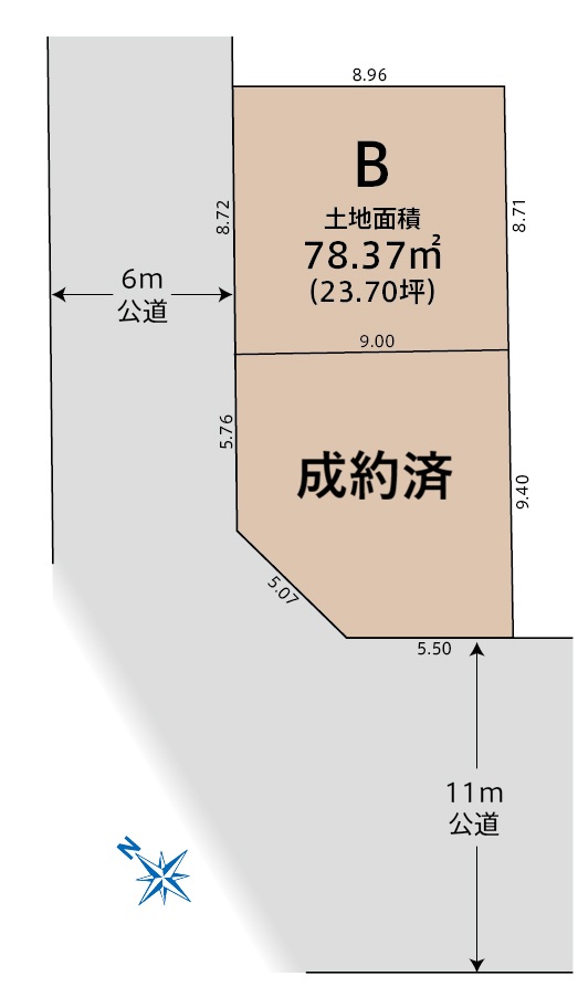 | 道路 | 北西側:公道6.0m(第42条1項1号) | 地目 | 宅地 |
