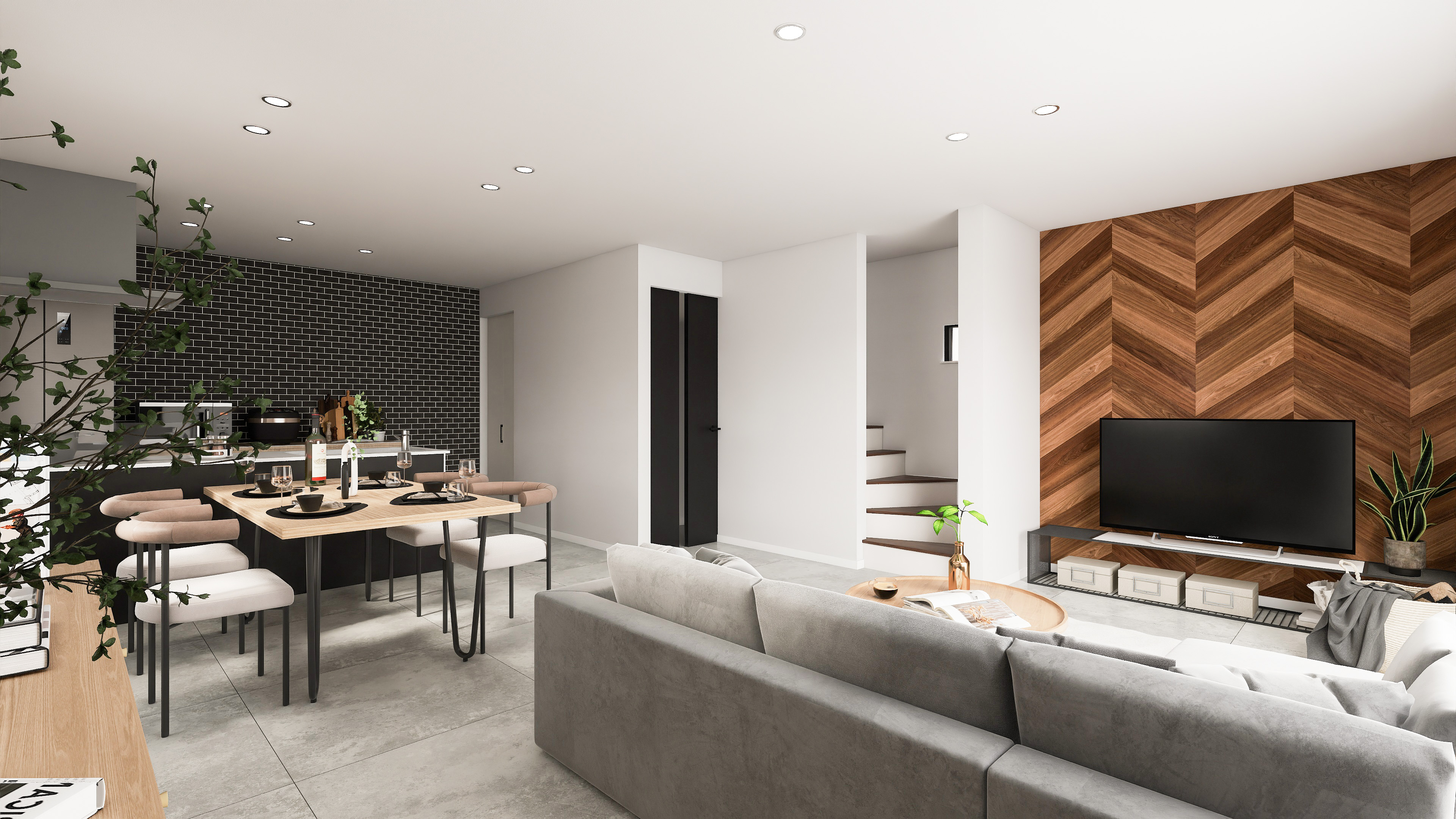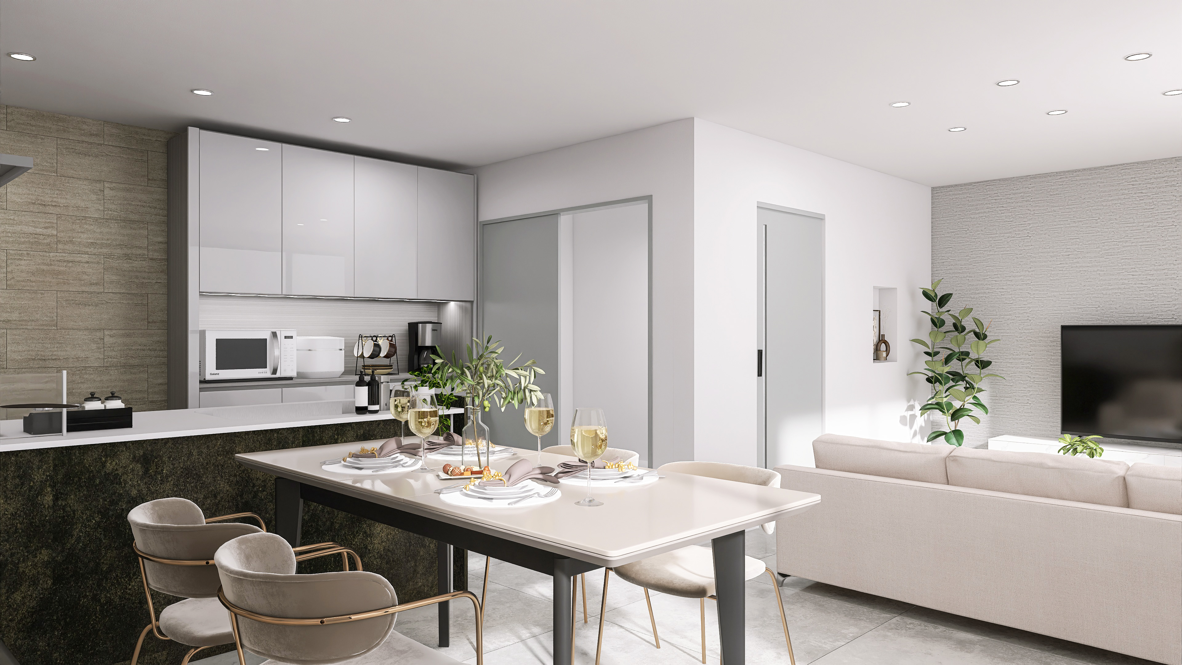 A棟は落ち着いた重厚感のある雰囲気で大人っぽく少し高級感も感じるトーンの仕上がり